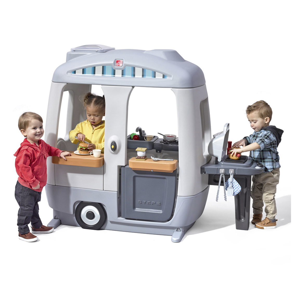 Explora el aire libre con estilo vintage. Con toneladas de espacio para jugar, el Adventure Camper está lleno de atractivas actividades de juego de simulación perfectas para el desarrollo social entre amigos y hermanos.incluye 50 accesorios de juegos .mesita ,parrilla,y timbre